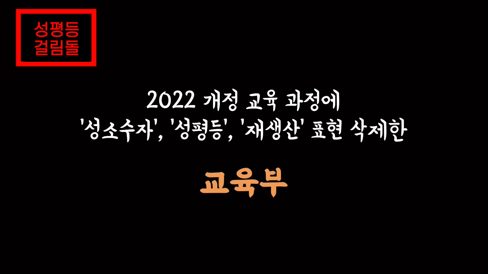 2022년 11월 9일 교육부는 2022 개정 교육 과정 마련을 위해 「초‧중등학교 교육과정」과 「특수교육 교육과정」개정안에 대해 행정예고했다. 행정 예고안 내용에는 고등학교 사회 교육 과정 ‘통합사회’에서 ‘성소수자 용어에 우려’가 있다며 ‘성소수자’ 용어를 삭제했다. 도덕·보건 교육과정에서는 ‘성 관련 표현에 지속적으로 제기된 국민의 우려를 고려’ 한다는 명분으로 ‘재생산권’, ‘섹슈얼리티’ 표현을 삭제했으며 ‘성평등’이라는 말도 삭제했다. ‘성소수자’는 ‘성별, 연령, 인종, 국적, 장애 등을 이유로 차별받는 사회 구성원’, ‘성평등’은 ‘성에 대한 편견’, ‘성‧재생산 건강과 권리’는 ‘성‧생식 건강과 권리’로 대체되었다. 시안 개발에 참여한 연구진의 의견을 묵살하며 교육부가 일방적으로 결정한 것으로 알려진 이 행정 예고안은 여성과 성소수자에 대한 혐오와 차별을 일삼는 일부 세력의 목소리에 교육부가 힘을 실어준 것이다. 사회 모든 구성원이 교육을 통해 습득해야 하는 가치는 차별과 배제가 아니라 다양한 개개인과 그 삶이 존중받는 성평등의 가치이다. 교육부의 행정예고안은 실재하는 성소수자의 존재와 성차별을 지우고 많은 시민들과 시민사회운동이 진전시켜 온 성평등과 인권을 퇴행시키는 걸림돌로 철회되어야 한다.