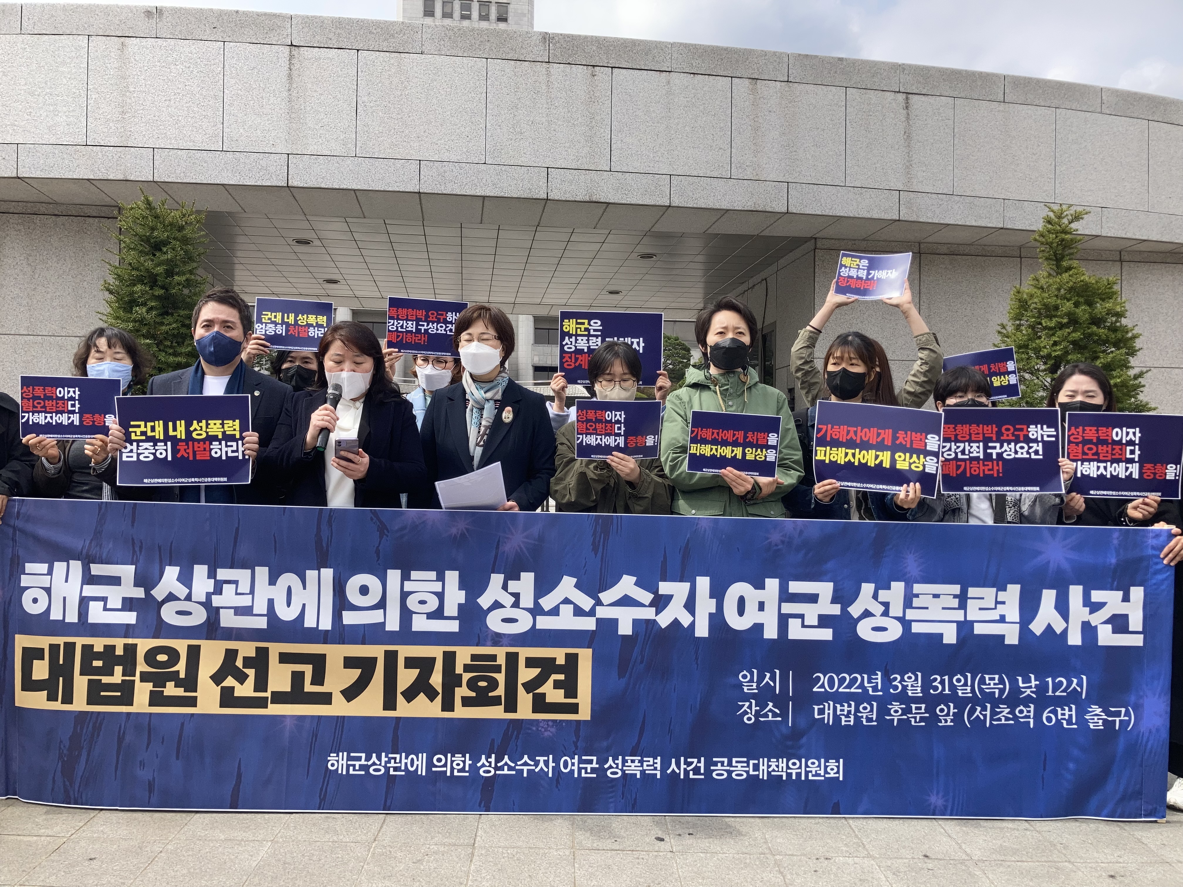 2018년 11월 8일 고등군사법원이 해군 내 성소수자 여군을 상대로 한 성폭력에 대해 1심 유죄선고를 뒤집고 무죄 판결을 선고했다. 피해 당시 초급 여군 장교이자 성소수자인 피해자는 직속상관인 A중령과 B대령으로부터 성폭력 피해를 입었다. 1심에서 A중령은 징역 10년, B대령은 징역 8년형이 선고되었으나 고등군사법원은 “피해자가 저항하지 않았으므로 폭행 또는 협박이 있었다고 보기 어렵고, 피해자의 진술의 신빙성이 의심된다”라는 이유로 피해자의 구체적 피해사실의 진술을 배척하고 가해자의 진술만을 채택하는 최악의 판결을 내렸다. 이후 2018년 12월 꾸려진 공동 변호인단은 이 사건의 법률대리인단으로 상고심과 손해배상청구 소송을 대리하였고 약 3년간의 대법원 상고심과 파기환송심 대응을 했다. 또한 4년간의 민사소송, 대법원 장기 계류에 대한 국가인권위원회 진정, UN인권이사회 특별절차 진정제출 등의 다양한 법적 지원 활동도 진행했다. 장기간에 걸친 다양한 법적 지원 활동의 결과로 2022년 3월, 대법원 상고심에서 B대령에 대해 유죄취지의 파기환송 판결을 이끌어냈으며, 2023년 2월 10일 선고된 파기환송심에서 A중령은 1심과 마찬가지로 징역 8년을 선고받았다. 이러한 변호인단의 활동은 피해자가 겪은 성폭력 피해뿐 아니라 성평등한 군 조직문화 개선을 위한 다양한 의제를 공론화하는데 기여하였고, 재판과정에서 드러난 군사법원의 성인지 감수성 미비, 강간죄의 법적 요건인 최협의설 문제, 피해자다움의 편견 등 군 사법 제도의 문제점과 실효성 없는 군 성폭력 예방대응체계의 문제를 공론화하여 군대 내 성폭력 사건의 민간법원 이양 등 실질적인 군 사법 제도의 개혁에 기여했다. 해군상관에 의한 성소수자 여군 성폭력 사건 공동대책위원회 변호인단의 이러한 활동은 최근 잇따라 발생하고 있는 군대 내 성폭력 사건의 제대로 된 해결 방향이 무엇인지 제시하였고 군대 내 여성과 소수자 인권 향상을 위한 길을 만들어냈다.