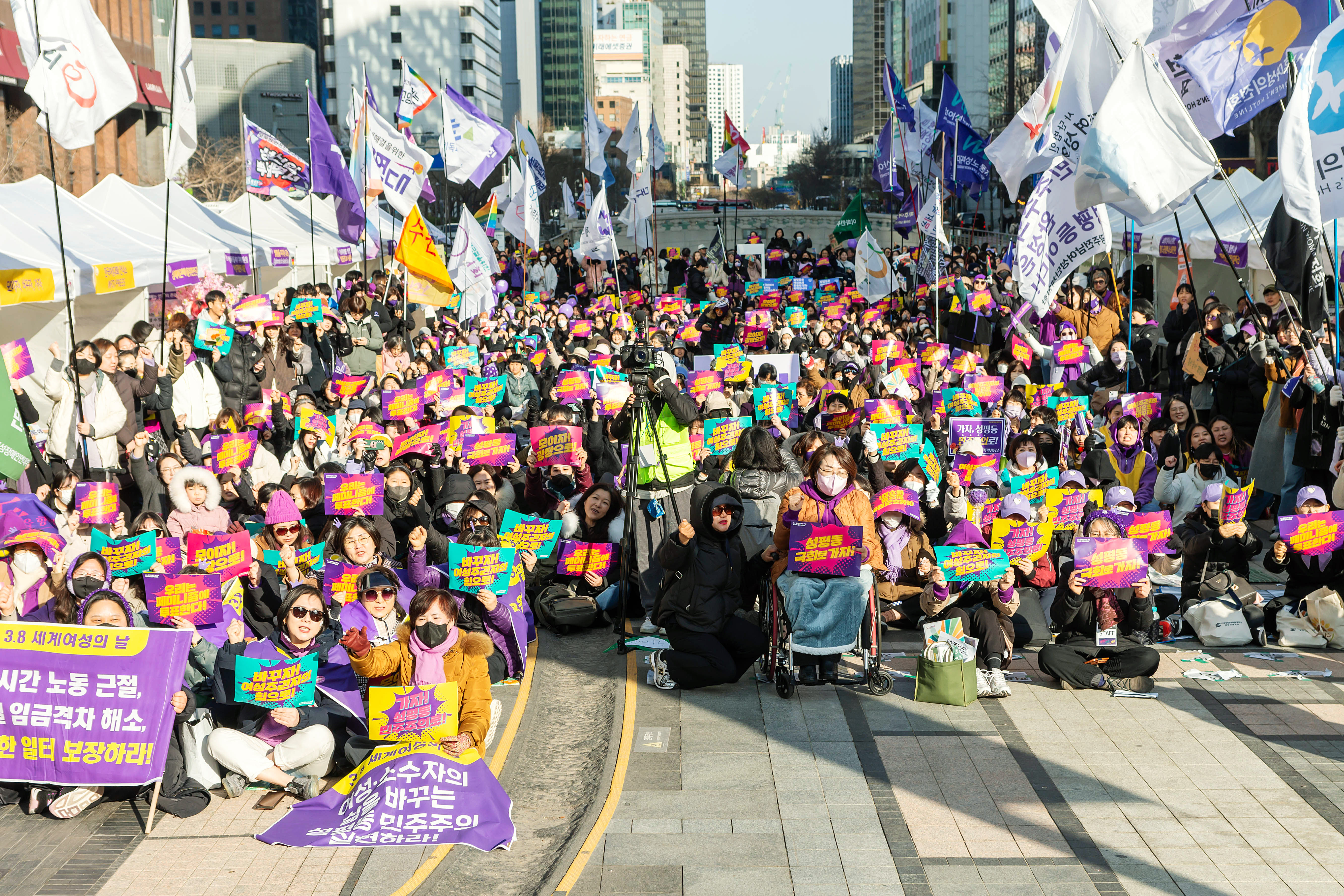 - 성평등은민주주의의완성이다 #38세계여성의날 #한국여성대회 #서울청계광장 #성평등을향해전진하라 #어두울수록빛나는 #연대의행진 #모이자광장으로 #바꾸자여성주권자의힘으로 #가자성평등