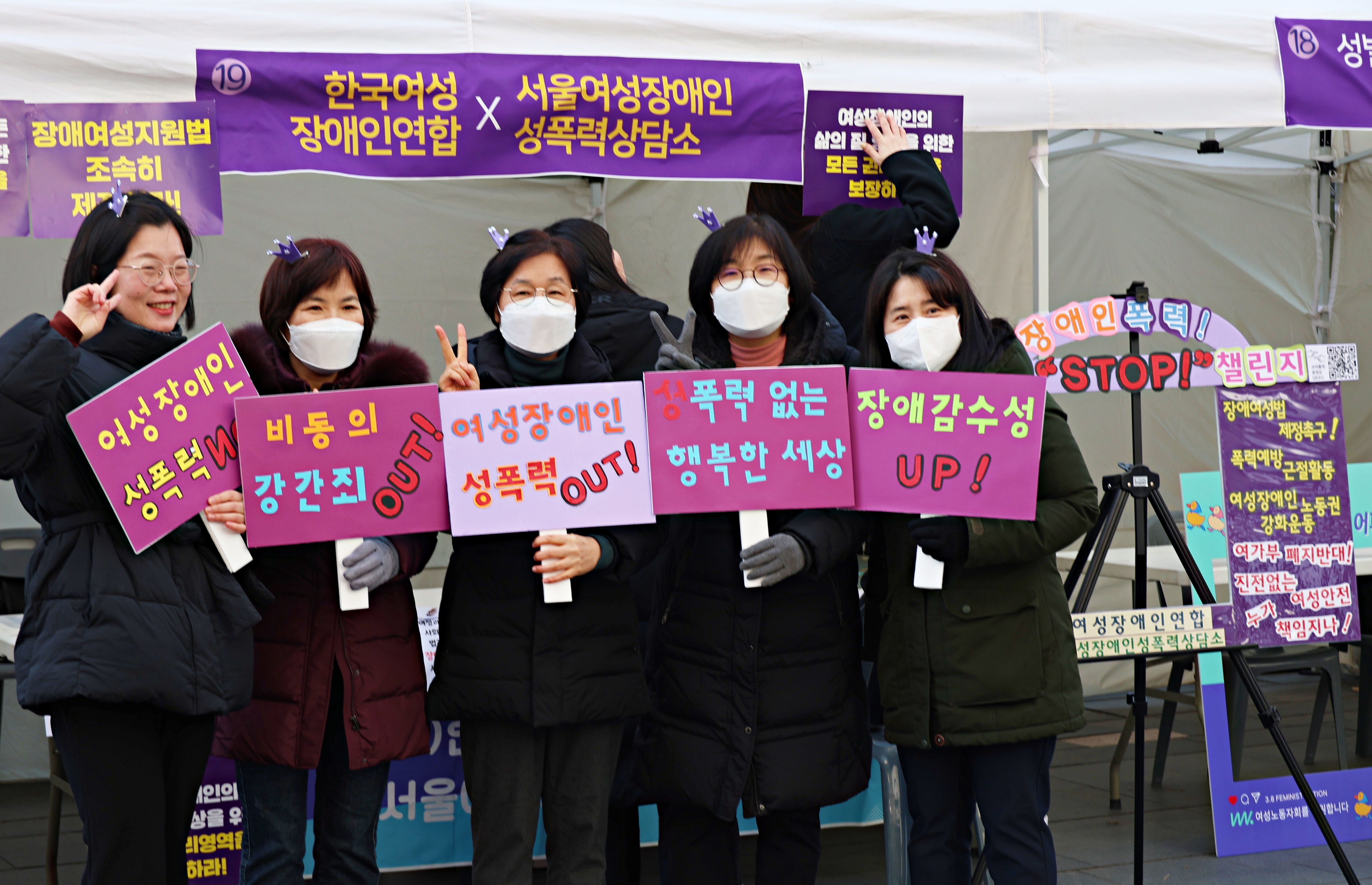 지난 3월 8일(금) 서울 청계광장에서는 <3.8 세계여성의 날 기념 제39회 한국여성대회>가 수많은 시민들이 참여한 가운데 개최되었습니다. '성평등을 향해 전진하라- 어두울수록 빛나는 연대의 행진' 슬로건으로 개최된 이번 대회에는 전국에서 모인 2천 여명 여성·시민들이 성평등 사회로의 전진을 다짐했습니다.