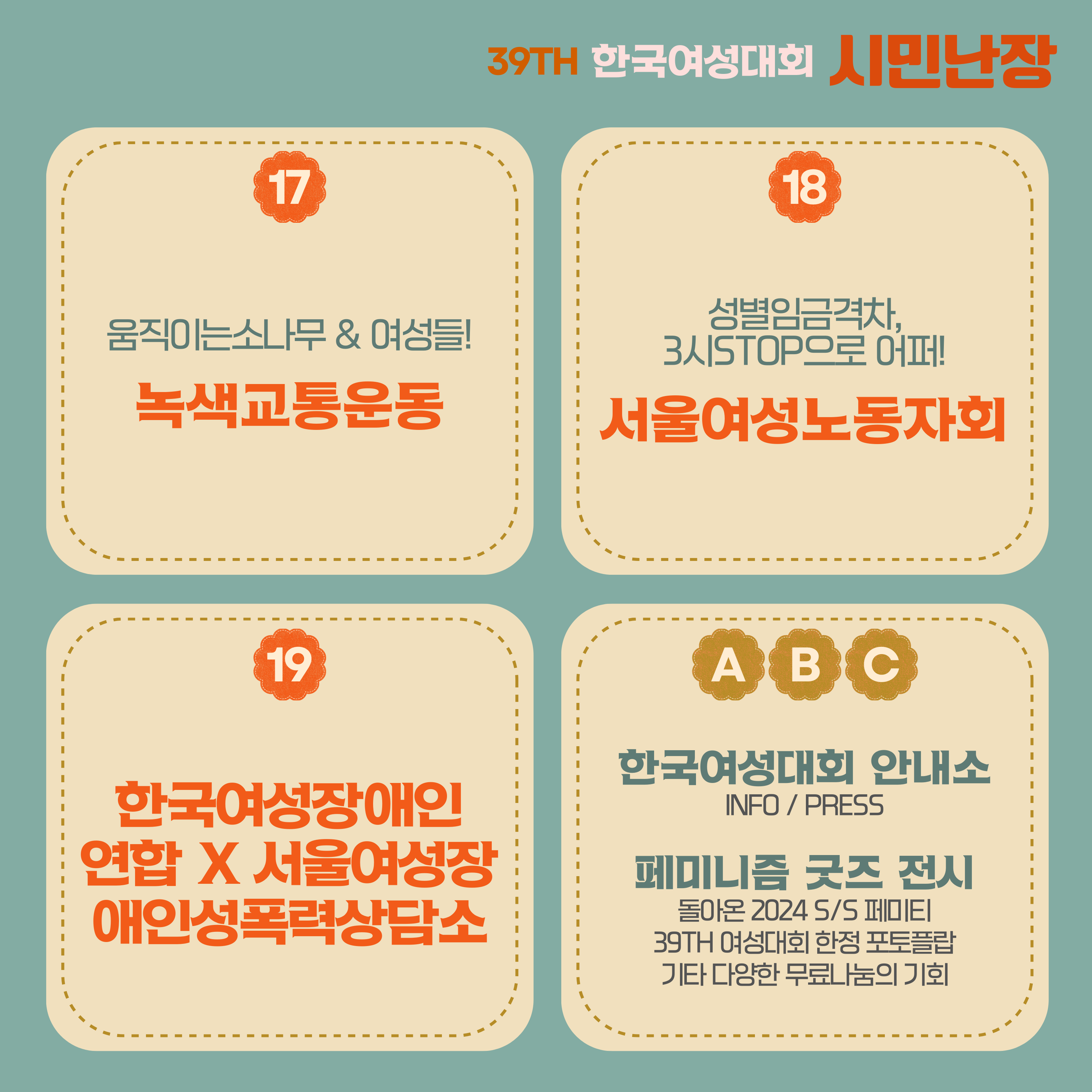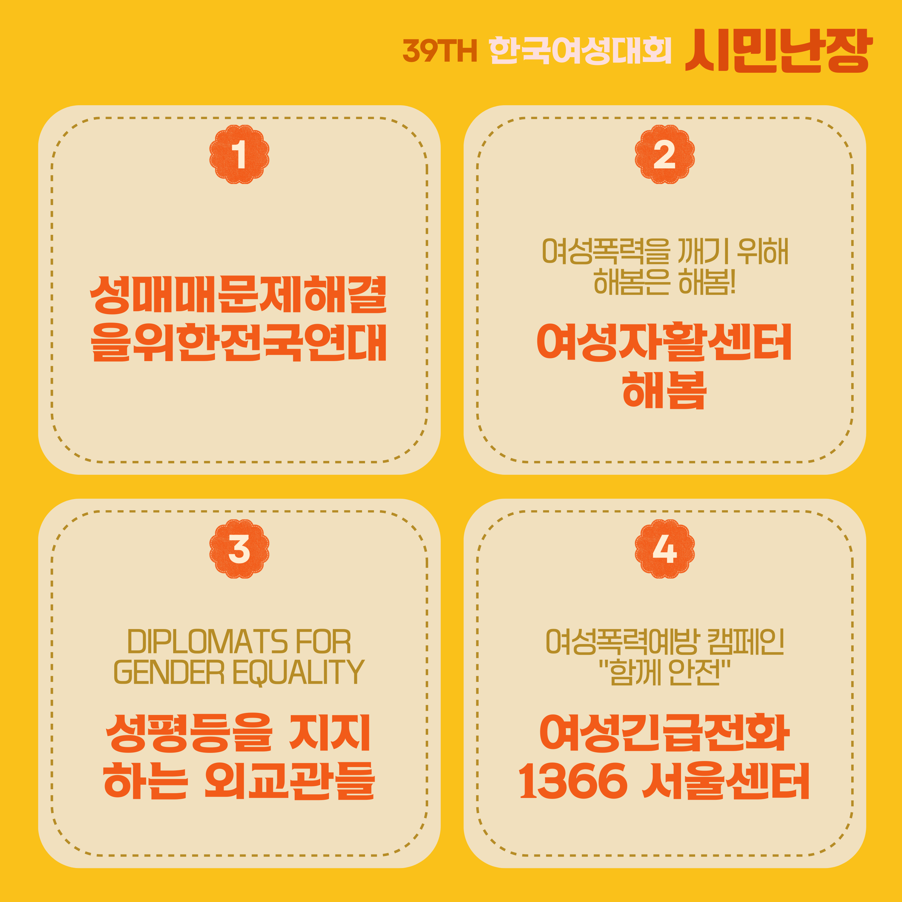 2024년 3.8세계여성의날 기념 제39회 한국여성대회 시민난장 참가 부스 본문