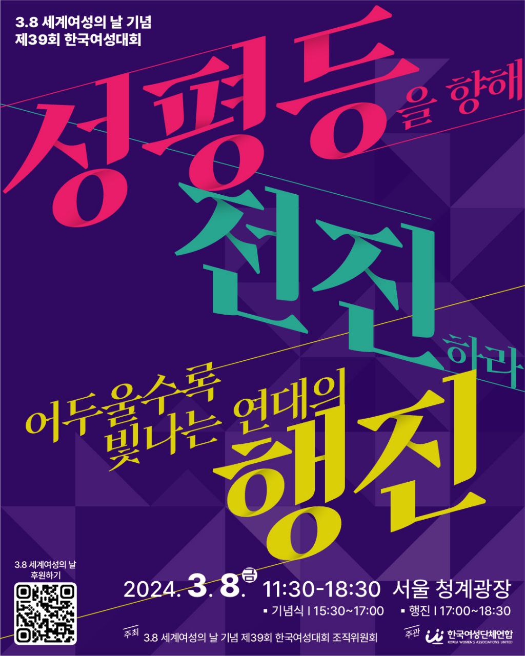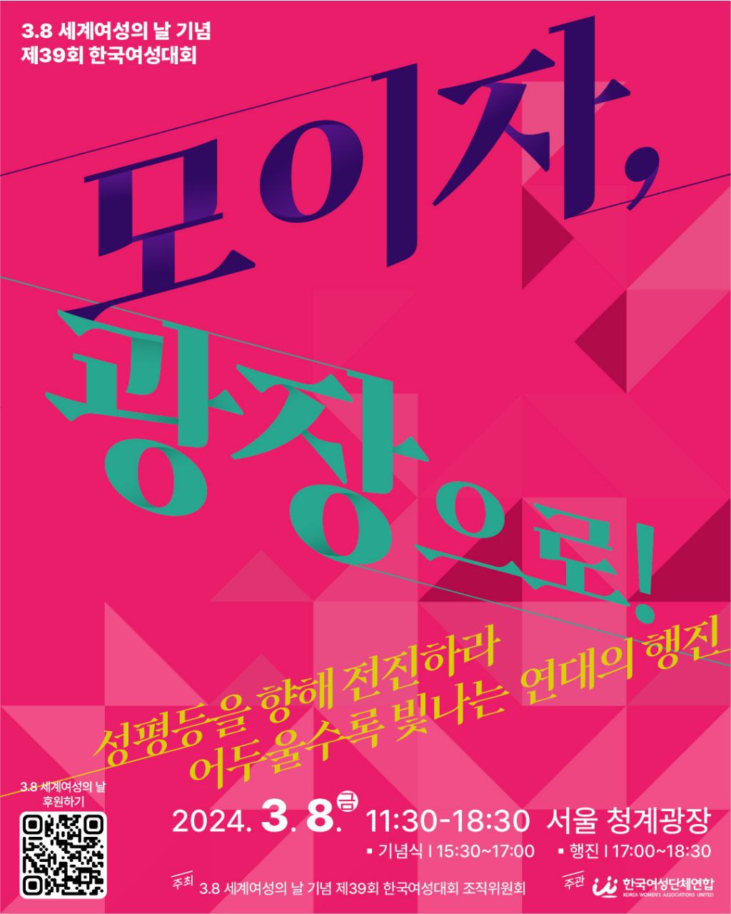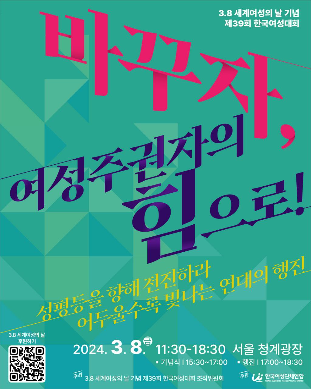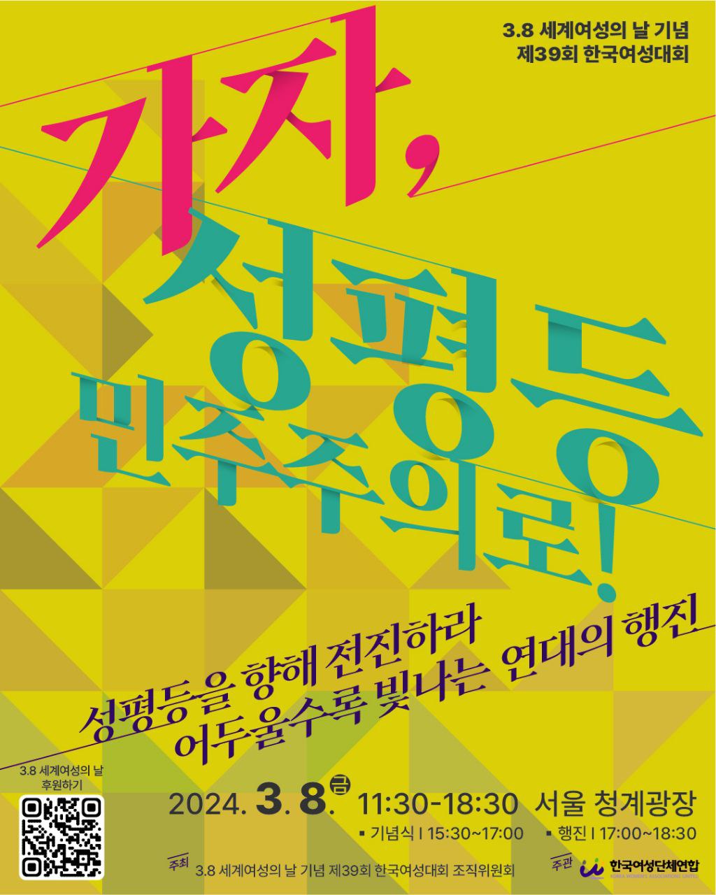 | 3.8 세계여성의 날 기념 제39회 한국여성대회 행사 안내 (0) | 2024.03.28 |