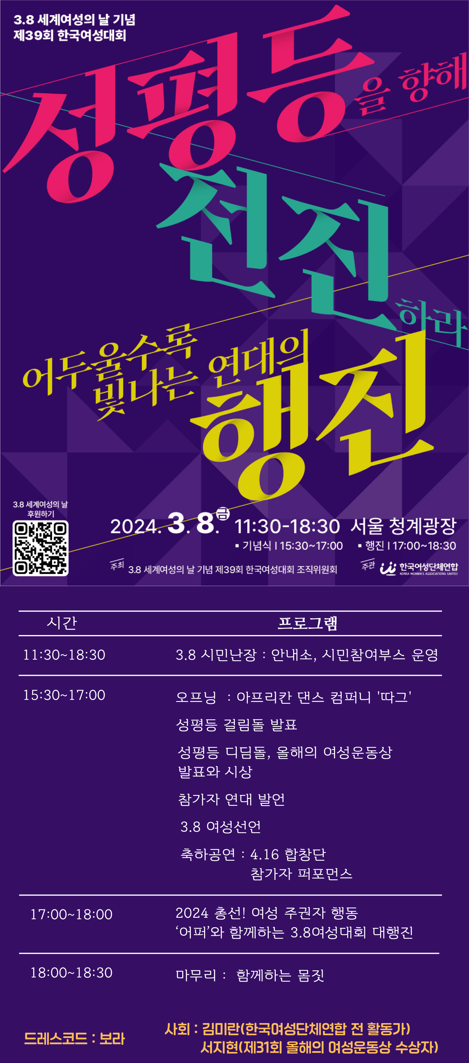 3.8 세계여성의 날 기념 제39회 한국여성대회 행사 안내 본문