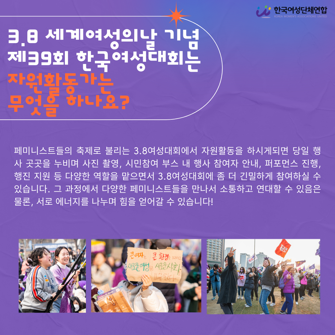 [여성대회] 2024년 제39회 한국여성대회 자원활동가를 모집합니다! (~2/9(금))