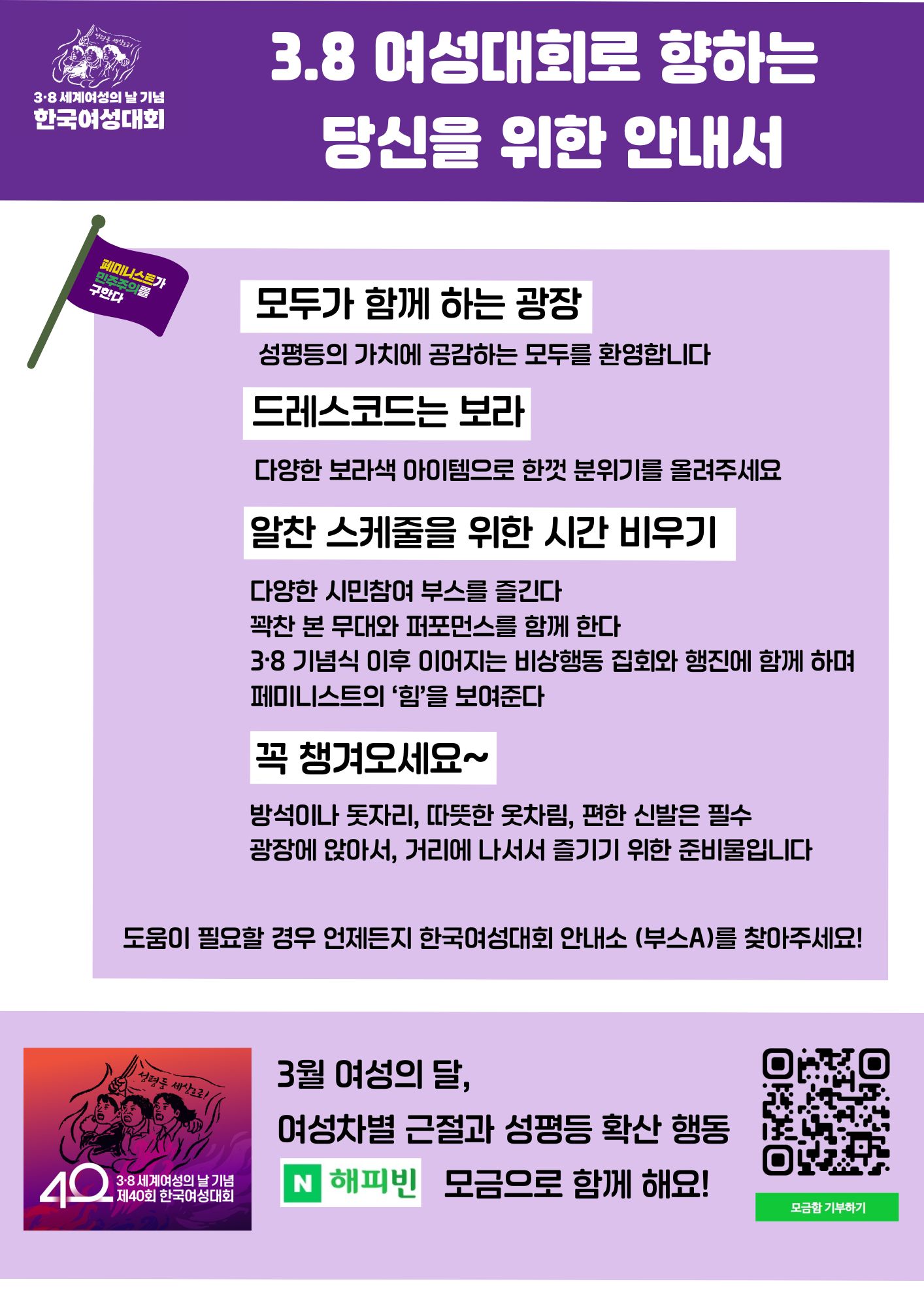 3.8 세계여성의 날 기념 제40회 한국여성대회 전체 프로그램 안내(총정리)