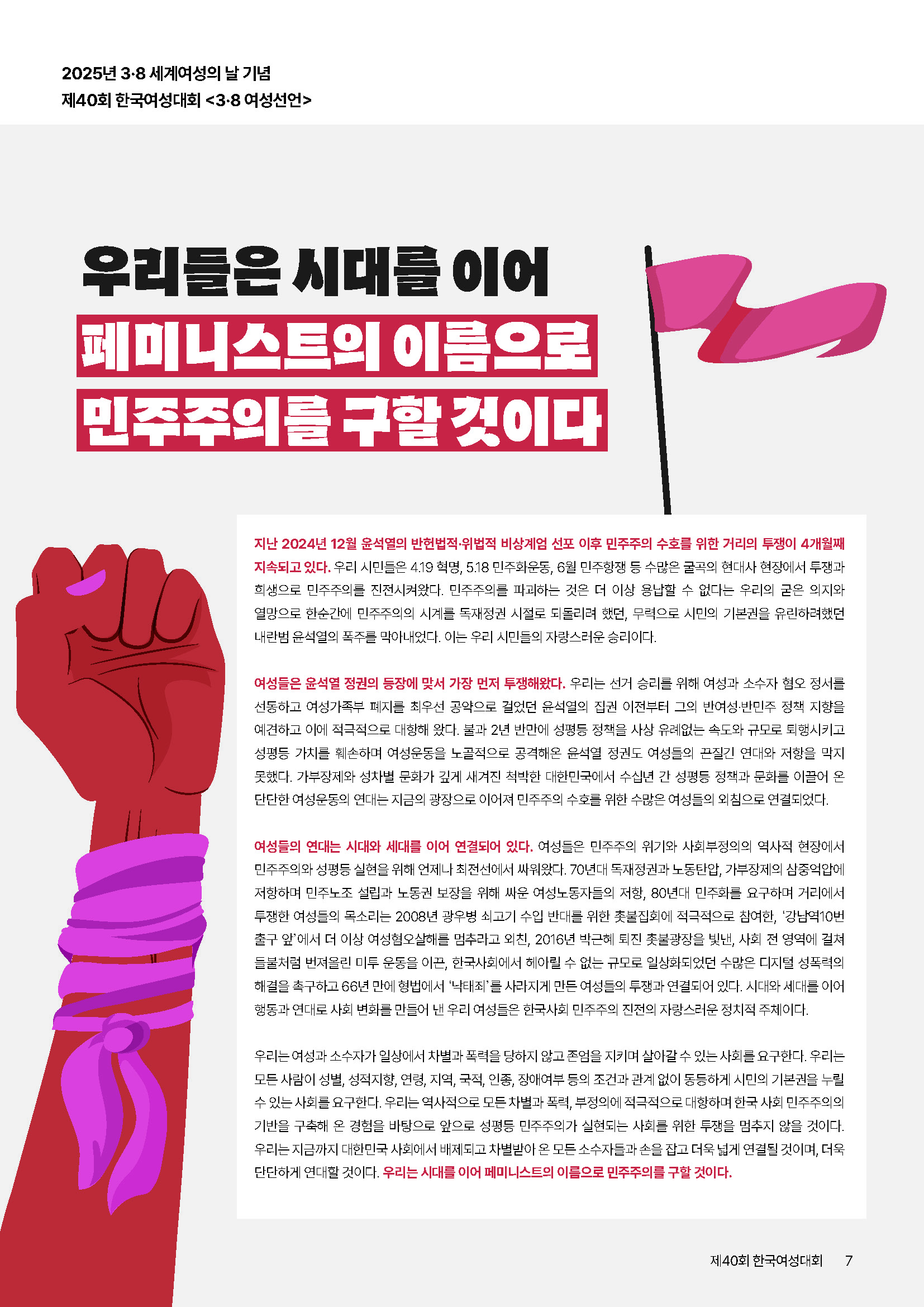 [3.8 여성선언] 2025년 3.8 세계여성의 날 기념 제40회 한국여성대회