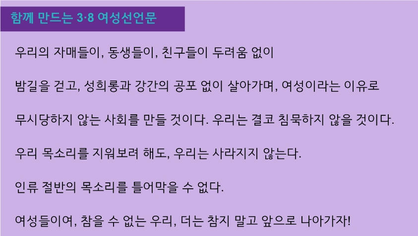 우리는 언제나, 항상 이 자리에 있었다. 그리고 이제, 진짜 성평등한 세상을 만들 때가 왔다.