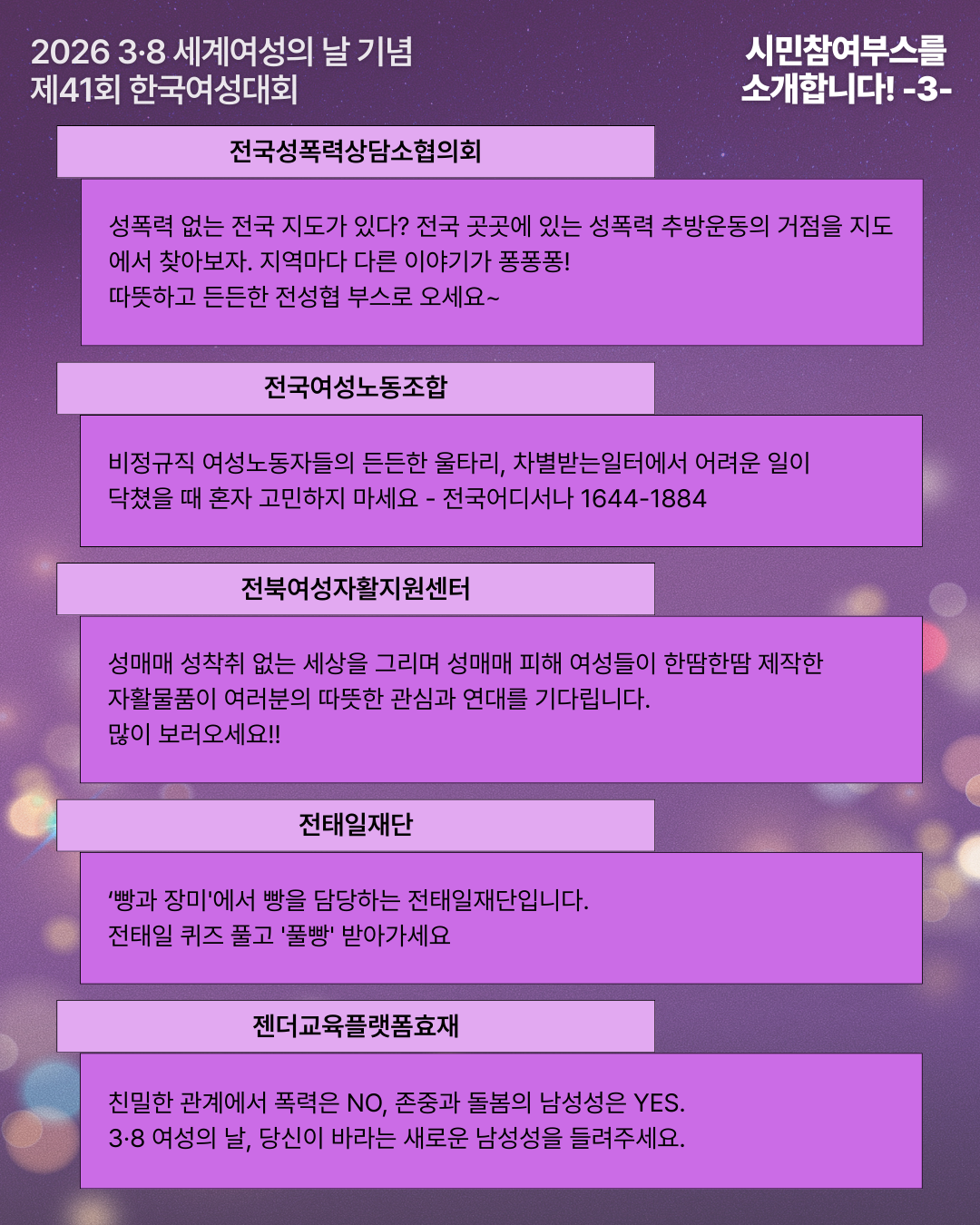 | [3·8여성대회] 2026 3·8 세계여성의 날 기념 제41회 한국여성대회 최종 안내 - 3/7(토) 광화문 서십자각 (1) | 2026.03.06 |
