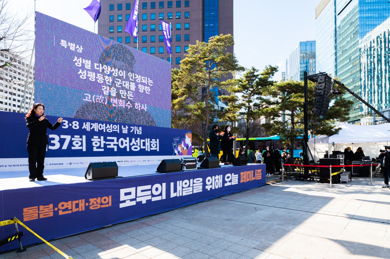 3.8 세계여성의 날 기념 한국여성대회/제37회 한국여성대회(2022) 3.8 세계여성의 날 기념 제37회 한국여성대회 사진 kwau_38 2023. 4. 13. 11:06 행사장 전경 행사장 전경 행사장 전경 대회사 성평등 디딤돌 발표 성평등 디딤돌 특별상 올해의 여성운동상 3.8여성선언 축하공연 '슬릭' 축하공연 '이랑' 거리행진 거리행진 거리행진 참여프로그램 '우리는 이런 나라를 원한다' 마무리행사 - 주권자행동 퍼포먼스