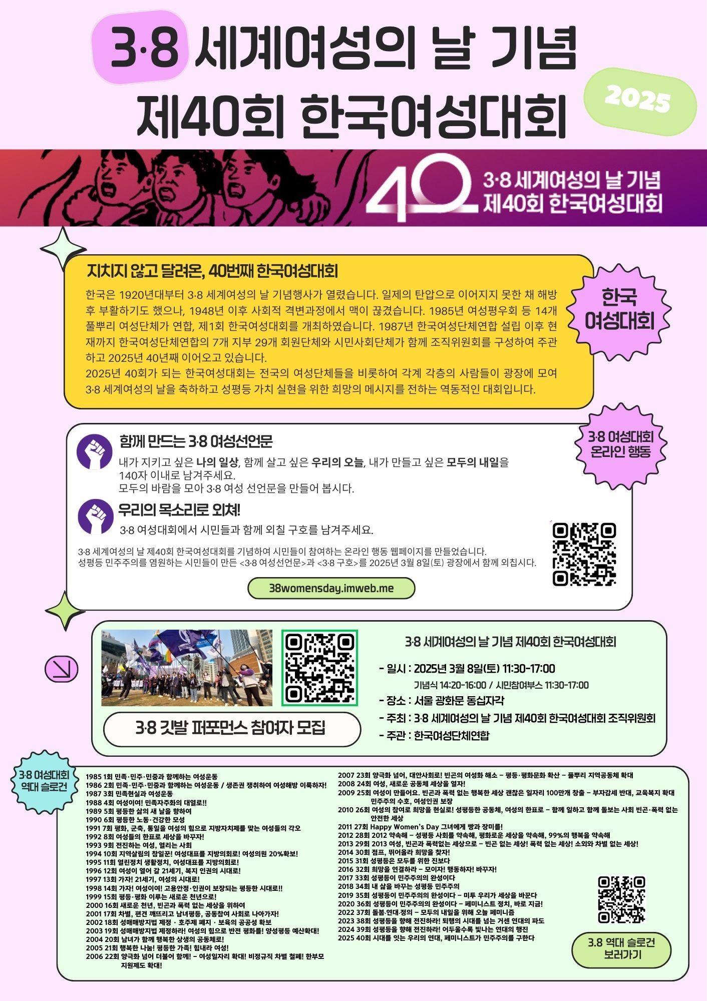 - 주최 : 3.8 세계여성의날 기념 제40회 한국여성대회 조직위원회