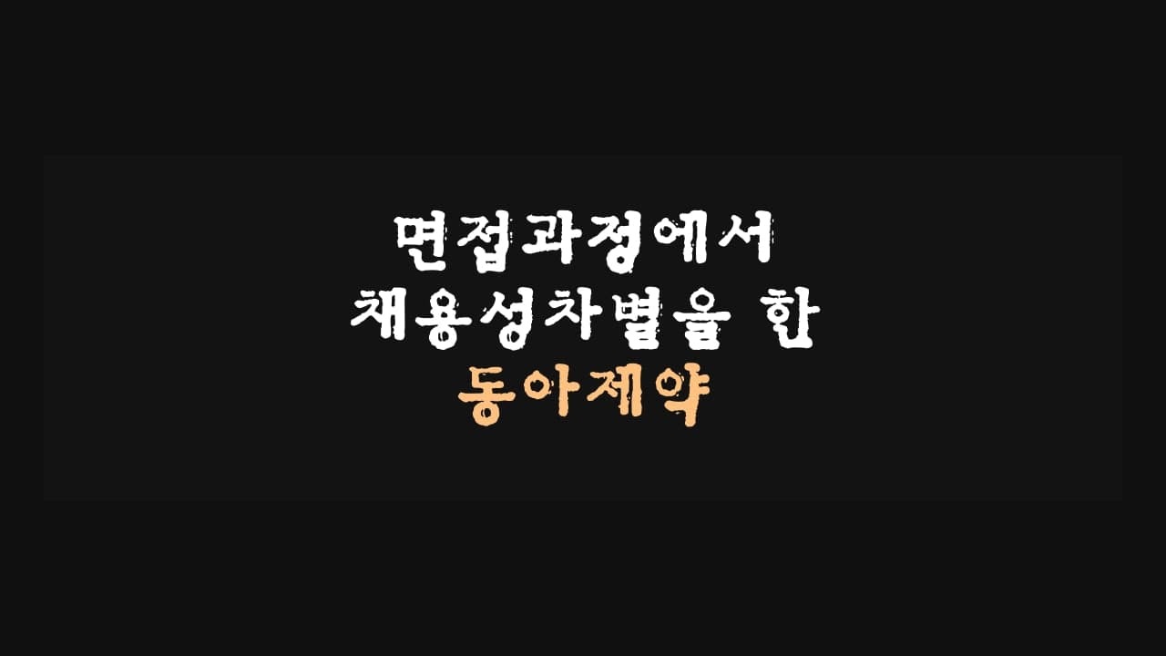 2020년 동아제약 신입사원 채용 면접 과정에서 여성 지원자에게 성차별적 질문을 한 사실이 2021년 3월 초 온라인에서 당사자의 글을 통해 밝혀졌다. 당시 면접관이었던 동아제약 인사팀장은 해당 면접에서 여성 지원자에게 “여성은 군대에 가지 않으니 남성보다 월급을 적게 받는 데에 동의하느냐”, “군대에 갈 생각이 있느냐”는 질문을 하였다. 이 사실이 알려지자 시민들은 공분하며 동아제약 상품 불매운동을 일으켰다. 이를 의식한 동아제약은 사과문을 냈지만, 해당 질문을 성차별적 질문으로 인정하지 않고 ‘성차별적 오해’를 야기했다는 변명으로 일축하며 조직 차원의 문제가 아닌 개인의 일탈로 축소하는 행태를 보였다. 이에 시민사회단체들의 연대체인 채용성차별철폐공동행동은 3월 15일 공식 사과와 재발 방지 대책 수립을 요구하는 기자회견을 개최하고 공개의견서를 동아제약에 전달하였다. 일주일 후 동아제약은 공식 사과문을 발표했으나 여전히 여성노동자에 대한 성차별이라는 점을 인정하지 않은 채 청년에게 발생한 차별로 언급하는 등 문제의 본질을 회피하고 책임지지 않으려는 자세를 보였다. 사건 발생 후 1년이 넘은 지금까지도 동아제약은 채용성차별 방지를 위한 어떠한 구체적인 대안도 발표하지 않고 있다.